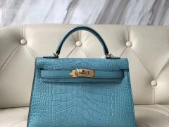 Hermès(爱马仕)Minikelly ll Alligator matt 雾面鳄鱼 3Z 圣西尔蓝 金扣