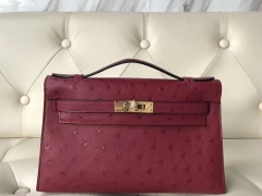 Hermès(爱马仕)Mini Kelly 22cm ostrich kk鸵鸟 枣红色 顶级工艺 蜡线全手工 接受定制
