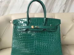 Hermès(爱马仕)Birkin30cm shiny porosus crocodile 亮面澳洲湾鳄 6Q翡翠绿 蜡线全手工 金扣
