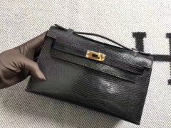 Hermès(爱马仕)蜥蜴皮 minikelly 22cm 黑金 好久没做过蜥蜴皮的现货