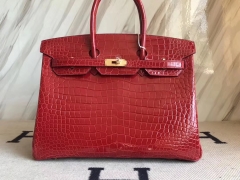 Hermès(爱马仕)Birkin 澳洲湾鳄 ck95法拉利红 顶级工艺 全手工蜜蜡线缝 金扣 35cm