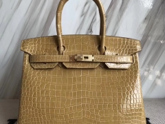 Hermès(爱马仕)Birkin30cm Porosus shiny 亮面澳洲湾鳄 杏色 奶茶色 金扣