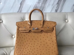 Hermès(爱马仕)Birkin25cm ostrich kk鸵鸟 顶级工艺 蜡线全手工 芥末黄