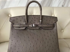 Hermès(爱马仕)Birkin25cm ostrich kk鸵鸟 顶级鸵鸟皮 ck18大象灰 蜡线全手工 银扣