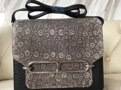 Hermès(爱马仕)Roulis 23cm 01自然色蜥蜴 拼 1T 泰坦绿 雾面框框鳄鱼 银扣