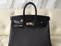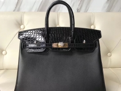 Hermès(爱马仕)Birkin25cm Swift 亮面鳄鱼 黑色 玫瑰金 Rose gold
