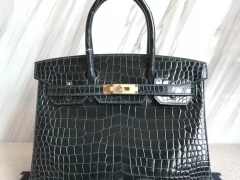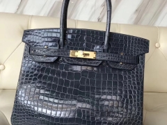 Hermès(爱马仕)Birkin30cm shiny porosus crocodile 澳洲湾鳄 N7风暴蓝 蜡线全手工 金扣