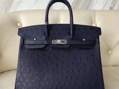 Hermès(爱马仕)Birkin25cm ostrich kk鸵鸟 顶级鸵鸟皮 ck73宝石蓝 蜡线全手工 银扣