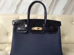 Hermès(爱马仕)Birkin30cm togo ck37宝石蓝拼亮面鳄鱼 ck78深海蓝 顶级工艺 蜡线全手工 玫瑰金
