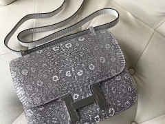 Hermès(爱马仕)Constance23cm lizard 进口蜥蜴皮 01自然色 蜡线全手工 银扣一枚[