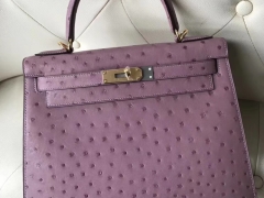 Hermès(爱马仕)Kelly 28cm ostrich kk鸵鸟 薰衣草紫 顶级工艺 蜡线全手工 金扣 接受定制
