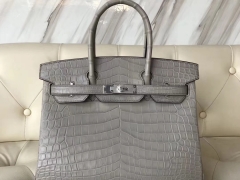 Hermès(爱马仕)Birkin30cm Matt crocodile 8M银河灰 蜡线全手工