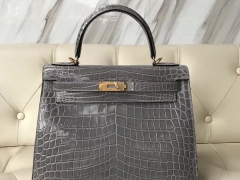 Hermès(爱马仕)Kelly32cm Porosus shiny 亮面澳洲湾鳄 ck89 黑色 金扣