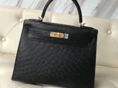 Hermès(爱马仕)Kelly28cm ostrich kk鸵鸟 顶级鸵鸟皮 ck89黑色 蜡线全手工 金扣一枚