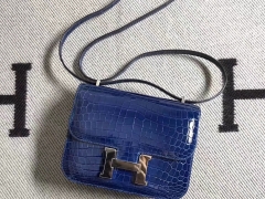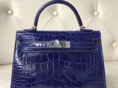 Hermès(爱马仕)小极品亮面鳄鱼 电光蓝 两点 小康 19cm 银扣 完美品质