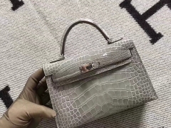 Hermès(爱马仕)亮面美洲鳄鱼mini 2代 斑鸠灰