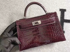 Hermès(爱马仕)亮面美洲鳄鱼 mini 2代 酒红色