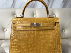 Hermès(爱马仕)Kelly25cm shiny nilo crocodile 亮面尼罗鳄 9D琥珀黄 顶级工艺 全手工蜜蜡线缝 金扣