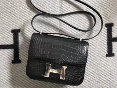 Hermès(爱马仕)雾面鳄鱼constance 19cm 经典黑银