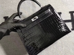 Hermès(爱马仕)Kelly cut 31cm porosus shiny 亮面鳄鱼 ck89 黑色 银扣