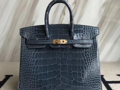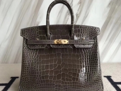 Hermès(爱马仕)Birkin25cm Alligator shiny 亮面鳄鱼 88 石墨灰 Graphite 金扣