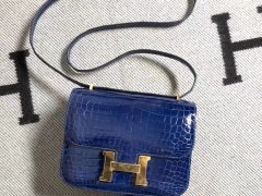 Hermès(爱马仕)小极品亮面鳄鱼 电光蓝 两点 小康 19cm 金扣,完美品质