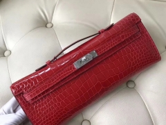 Hermès(爱马仕)Kelly31cm Porosus shiny 亮面澳洲鳄鱼 ck95 法拉利红 Braise 银扣