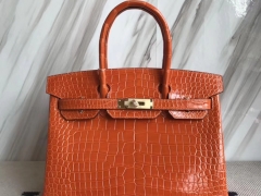 Hermès(爱马仕)Birkin30cm shiny porosus crocodile 澳洲湾鳄 8V栗罂橙 原厂御用HCp 蜡线全手工 金扣