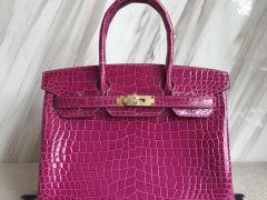Hermès(爱马仕)Birkin30cm shiny porosus crocodile 澳洲湾鳄 原厂御用HCP J5天方夜谭粉紫 顶级工艺 蜡线全手工 金扣