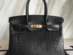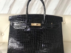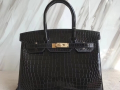 Hermès(爱马仕)Birkin35cm Porosus shiny 亮面澳洲湾鳄 ck89 黑色 金扣