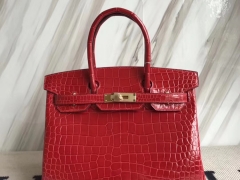 Hermès(爱马仕)Birkin30cm Porosus shiny 亮面澳洲湾鳄 ck95 法拉利红 Braise 金扣 现货