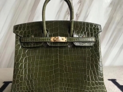 Hermès(爱马仕)Birkin25cm Crocodile shiny 亮面鳄鱼 6H 橄榄绿 金扣