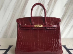 Hermès(爱马仕)Birkin25cm Crocodile shiny 亮面鳄鱼 F5 勃艮第酒红 新酒红 金扣