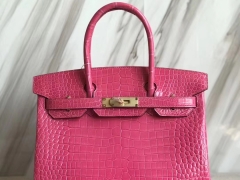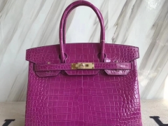 Hermès(爱马仕)Birkin30cm Porosus shiny 亮面澳洲湾鳄 L3 玫瑰紫 rose purple金扣