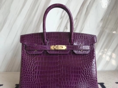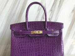 Hermès(爱马仕)Birkin30cm Porosus shiny 亮面澳洲湾鳄 葡萄紫 金扣