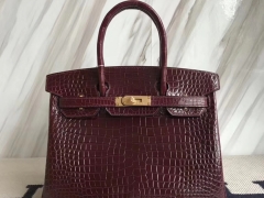 Hermès(爱马仕)Birkin30cm Porosus shiny 亮面澳洲湾鳄 ck57 波尔多酒红 Bordeaux 金扣 现货
