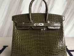 Hermès(爱马仕)Birkin25cm Crocodile shiny 亮面鳄鱼 6H 橄榄绿 银扣