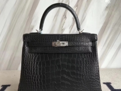 Hermès(爱马仕)Kelly25cm Alligator matt 雾面鳄鱼 ck89 黑色 银扣