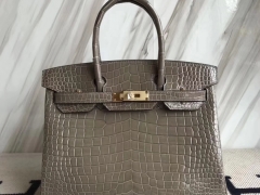 Hermès(爱马仕)Birkin30cm Porosus shiny 亮面澳洲湾鳄 ck81 斑鸠灰 Gris T 金扣