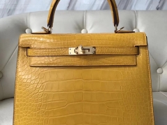 Hermès(爱马仕)Kelly25cm Matt alligator crocodile 9D琥珀黄 顶级工艺 全手工蜜蜡线缝 金扣