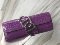 Hermès(爱马仕)egge 鳄鱼手包 玫红紫 银扣 手拿包 晚宴包