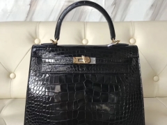Hermès(爱马仕)Kelly25cm Alligator shiny 亮面鳄鱼 ck89 黑色 dior 金扣
