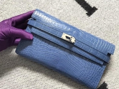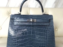 Hermès(爱马仕)Kelly25cm Alligator shiny 亮面鳄鱼 7N 风暴蓝 银扣