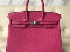 Hermès(爱马仕)Birkin25cm Ostrich kk鸵鸟 J5 桃红 银扣