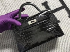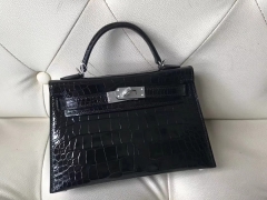 Hermès(爱马仕)Minikelly ll Alligator shiny 亮面鳄鱼 ck89 黑色 银扣