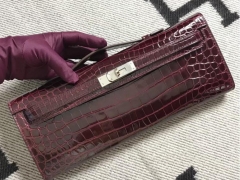 Hermès(爱马仕)kelly cut 31cm Crocodile shiny 亮面鳄鱼 5L 酒红色 金扣