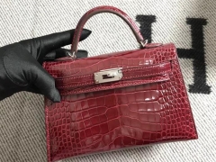 Hermès(爱马仕)Mini Kelly迷你凯莉包 美洲深红色 银扣 2代