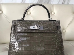 Hermès(爱马仕)Minikelly ll Alligator shiny 亮面鳄鱼 ck81 斑鸠灰 Gris T 银扣