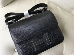 Hermès(爱马仕)Constance 24cm Alligator matt 雾面鳄鱼 ck89 黑色 蜥蜴扣 银扣 定制