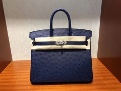 Hermès(爱马仕)Birkin25cm Ostrich Kk 鸵鸟 7K 宝石蓝 深蓝 银扣